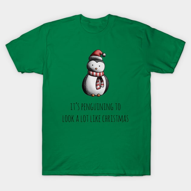 This “It’s Penguining to Look a Lot Like Christmas” T-Shirt is the perfect blend of festive cheer and whimsical fun. Designed for those who love to spread joy with a little humor, this tee is sure to bring smiles wherever you go. Whether you’re attending a holiday party or relaxing at home, this shirt will keep you in the Christmas spirit.