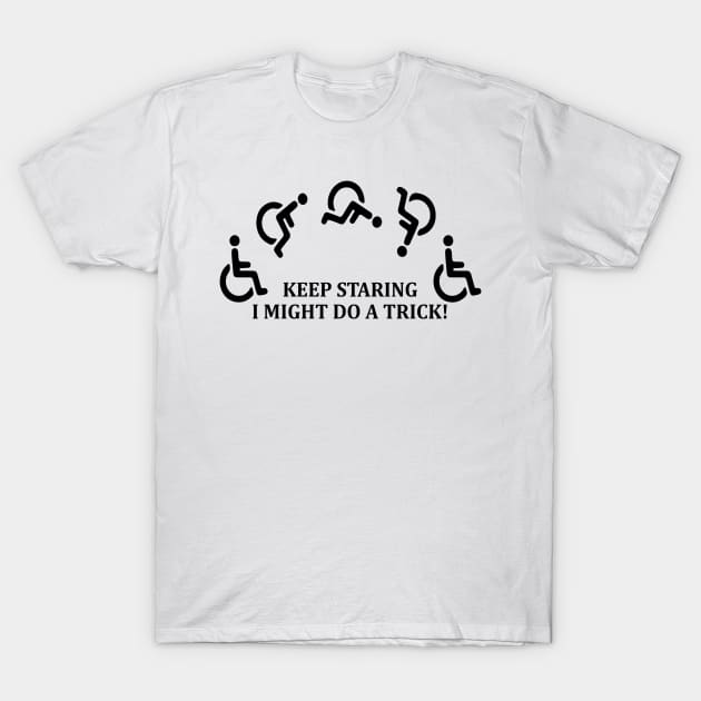 The “Keep Staring I Might Do A Trick” Wheelchair Funny Saying Quote T-Shirt is perfect for those who enjoy adding a touch of humor to their style. Its witty slogan is sure to turn heads and invite smiles, making it a great conversation starter. Whether you’re out with friends or attending casual events, this t-shirt adds a lighthearted twist to your wardrobe.
